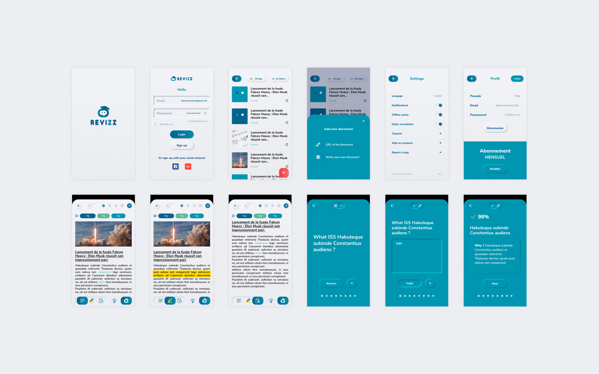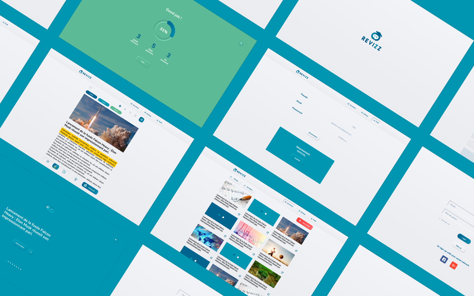 Revizz est une application d’intelligence artificielle dédiée à l’apprentissage, pensée pour accompagner étudiants et enseignants. J’ai conçu le logotype, l’identité graphique et l’interface de l’application, en assurant l’UX et l’UI design.
